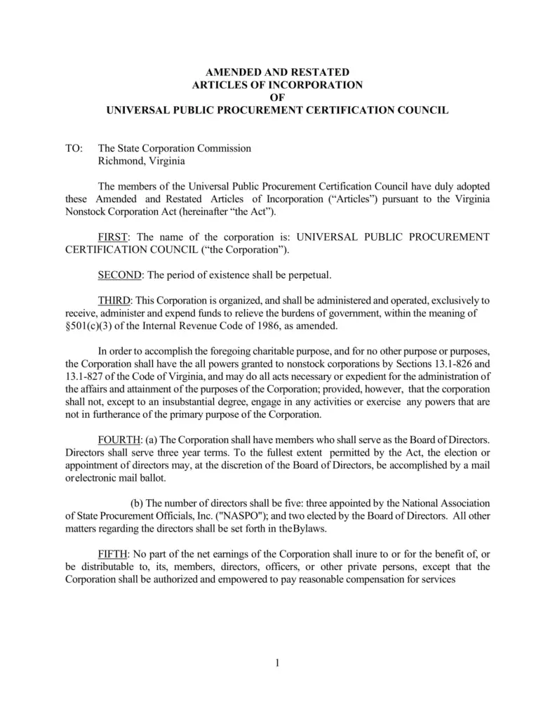 Articles of Incorporation